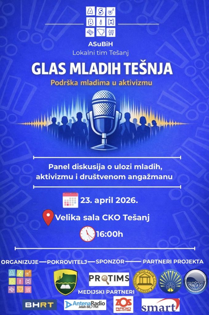 Lokalni tim Tešanj Asocijacije srednjoškolaca u Bosni i Hercegovini (ASuBiH) vas poziva na panel diskusiju “Glas mladih Tešnja – podrška mladima u aktivizmu” posvećenu ulozi mladih u društvu!