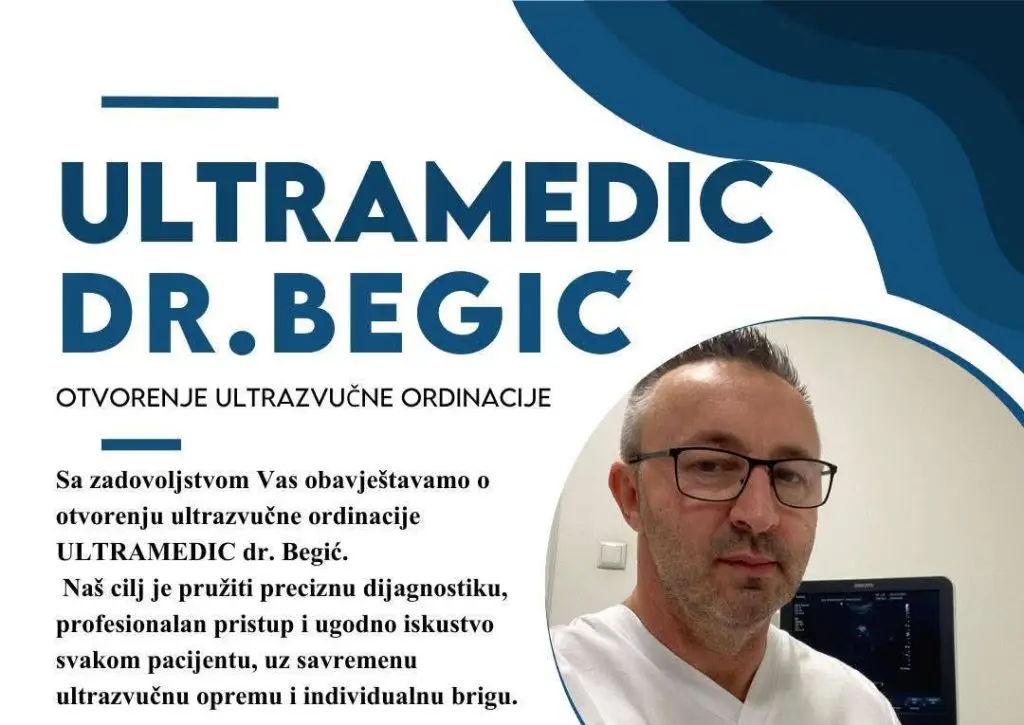 Sa zadovoljstvom vas obavještavamo da je specijalistička ultrazvučna ordinacija “Ultramedic Dr. Begić” zvanično počela sa radom! Naš cilj je pružiti vam preciznu dijagnostiku, profesionalan pristup i ugodno iskustvo uz korištenje najsavremenije ultrazvučne opreme.